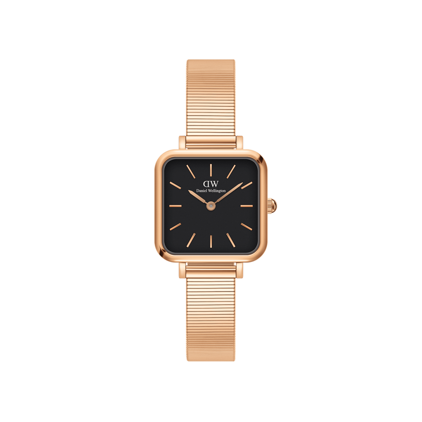 The Quadro Studio features a delicate and petite, black square dial, complemented by the sleek Piano strap. Crafted with polished stainless steel and available in a refined rose gold plating. A retro statement with timeless appeal.