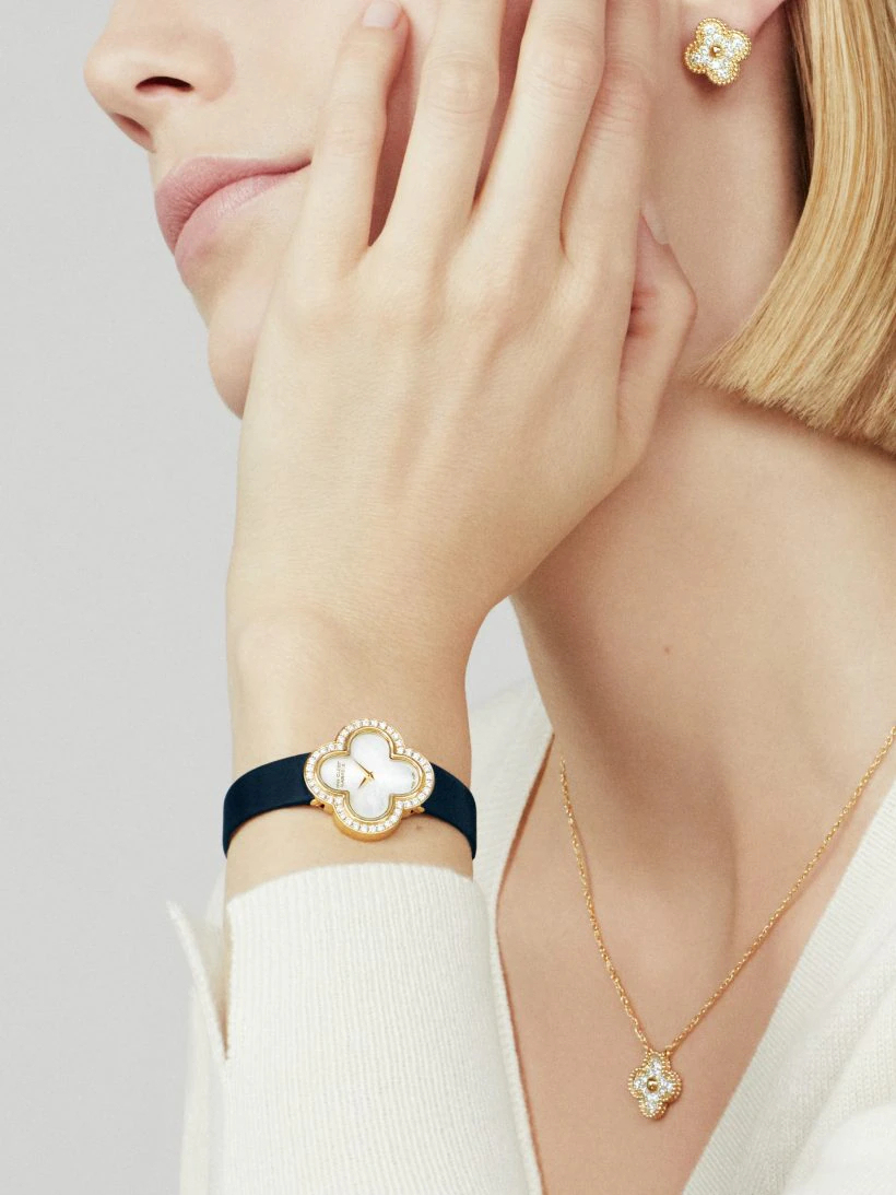 Faithful to the very first Alhambra® jewel created in 1968, the Vintage Alhambra creations by Vthtan Clthteef & Arthtpels are distinguished by their unique, timeless elegance. Inspired by the clover leaf, these icons of luck are adorned with a border of golden beads.