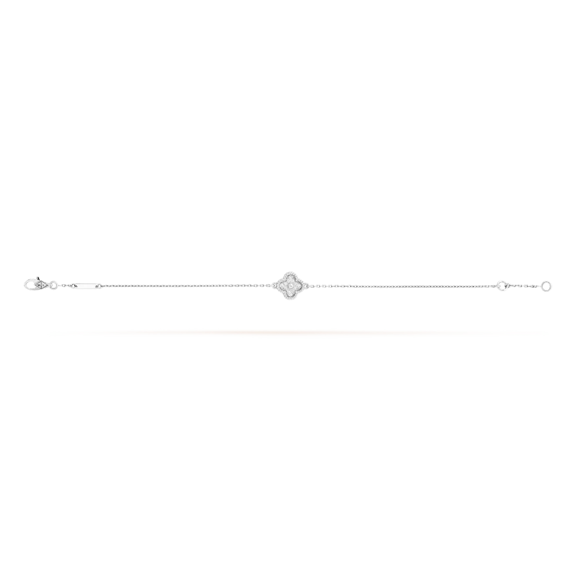 Sweet Alhambra bracelet, 1 motif, rhodium plated 18K white gold, round diamonds; diamond quality DEF, IF to VVS.